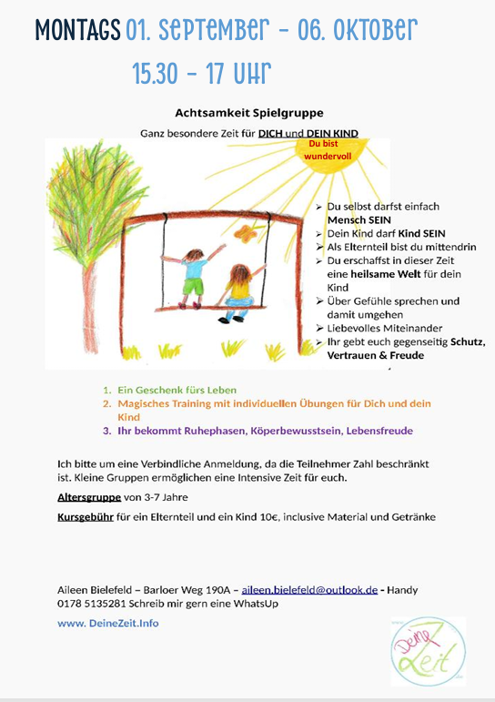 Für dich und dein Kind, inklusive Materialkosten für gemeinsam entspannte Nachmittage.